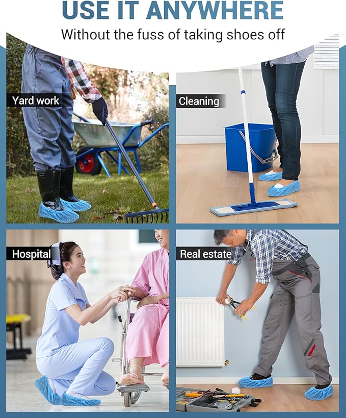 100 Count Shoe Covers Disposable Non-Slip, Premium Cloth Boot Covers, Slip-resistant, Durable, Breathable, Non-toxic, Recyclable
