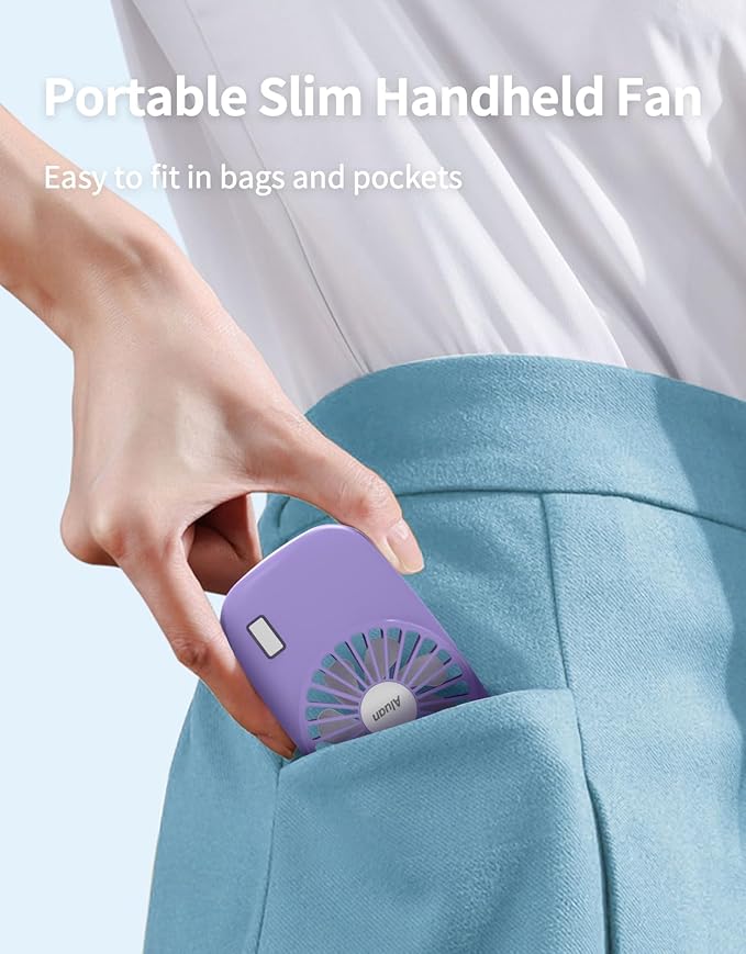 Aluan Handheld Mini Fan Powerful Small Personal Portable Speed Adjustable USB Rechargeable Eyelash Fan for Kids Girls Boys Woman Man Home Office Outdoor Travel, Purple