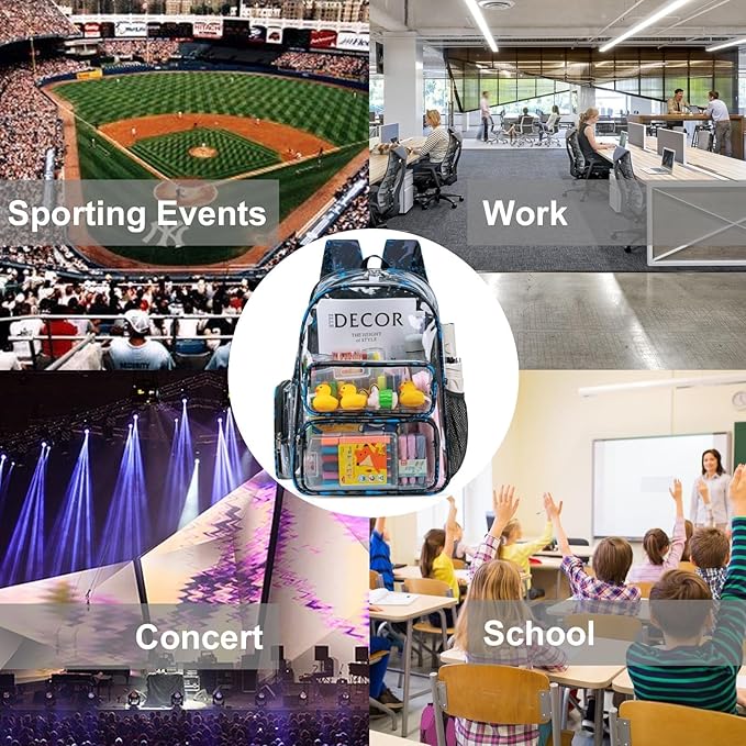 - Quickly pass security checks:The clear bag allows you go through stadium or airport security fast,which makes TSA scanning a lot easier. It's suitable for school, festival, sporting event, Game, concert, airport and travel; Great for security workplace where requires clear bags policy.