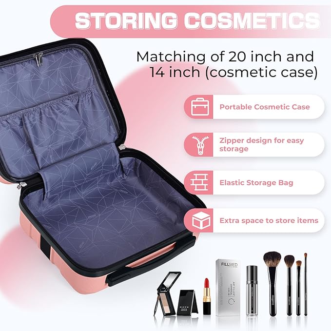 - 【Packing Includes】2-piece luggage sets includes 14inch Cosmetic Case(12.79 x 6.49 x 11.22) and 20inch Carry On Luggage(14.6 x 8.46 x 22.6).The golden ratio composite material of ABS+PC is approved to have the coexistence of firmness and flexibility.