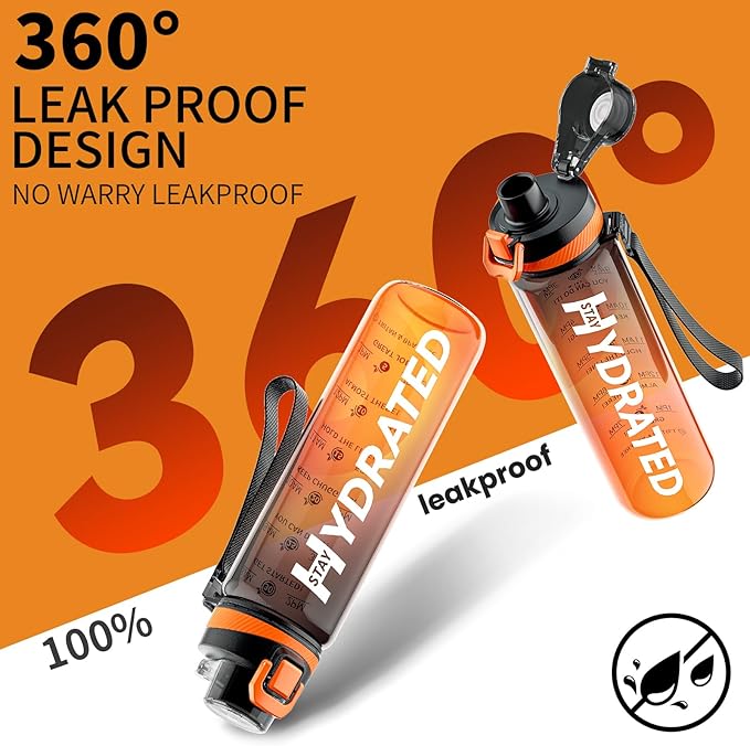 - Portable Fashion Design: The 32 oz/1 liter water bottles are suitable for all occasions and people. Whether it is men, women, girls or boys, it can be used in indoor and outdoor. Especially a HYDRATION WATER BOTTLE for school, gym, workout, hiking, cycling, and running! We come with a cleaning brush and nice packaging. Whether it is for personal use or as a gift, it is a good choice