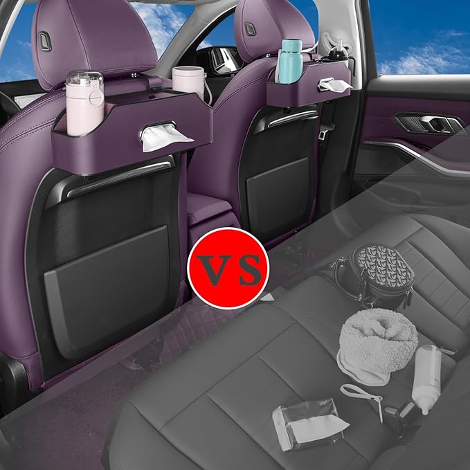 HOLDCY Car Back Seat Organizer with 2 Drink Cup Holder - Tissue Box and Storage Box Hook - Multi-functional Storage - Great for Kids and Travel (Purple)