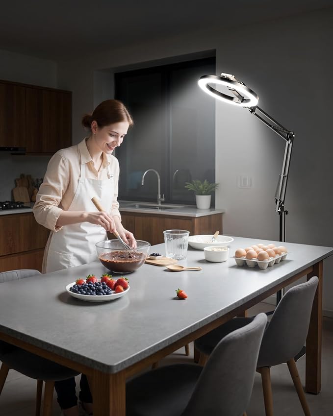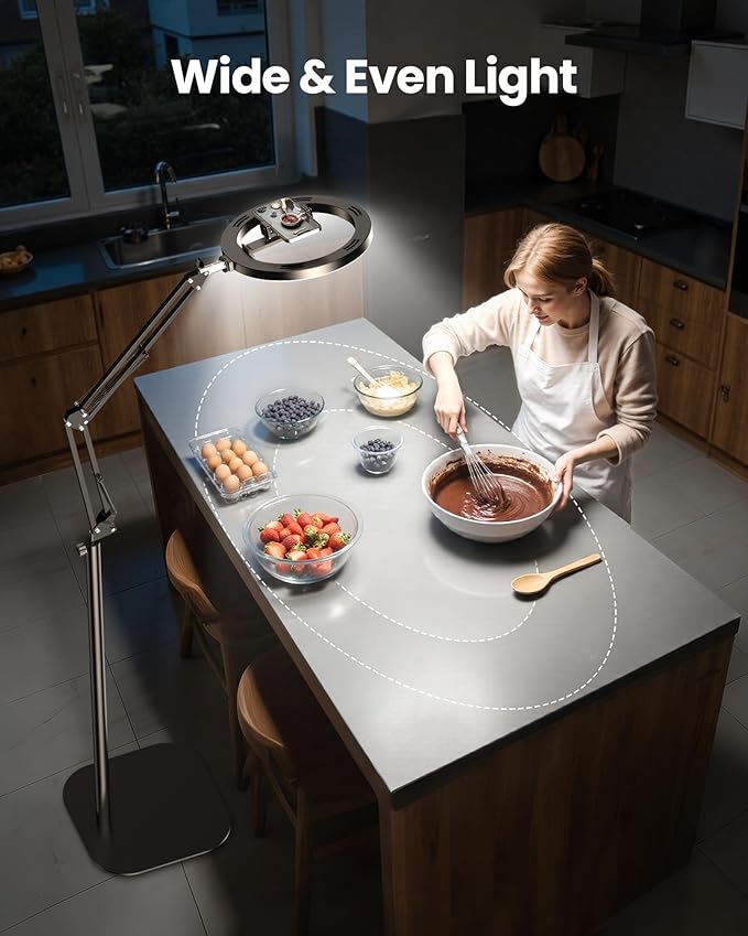 - Super Flexible & Shoot at Any Angle: The ultra-flexible arm on this overhead camera mount tilts, swivels, and extends in just 1 second—offering wider lighting coverage than standard stands. Easily capture overhead cooking, angled tutorials, or full-table DIY without moving your setup