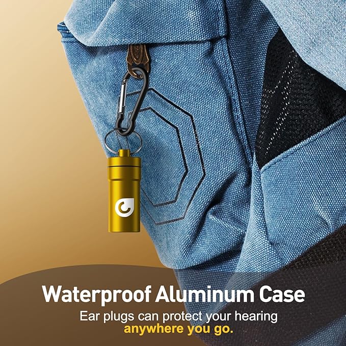 - REURE CAN PROTECT YOU ANYWHERE - The compact aluminum case with rubber seal is waterproof and dustproof. You can carabiner it on your key chain, jeans, or backpack and it can follow you anywhere. Ideal for concerts, noise sensitivity, tinnitus relief, motorcycles, musicians, sports events, flying, sleeping noise cancelling, etc.
