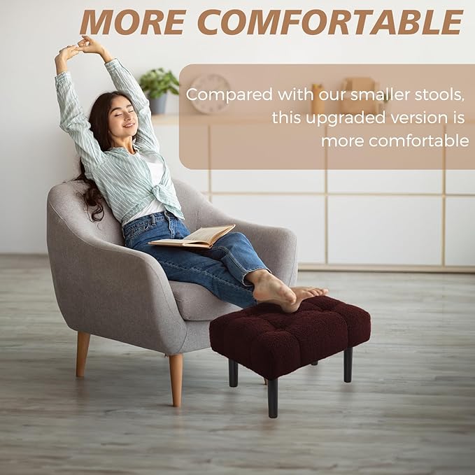 - 【AESTHETIC & COMFORTABLE】:The cover of the ottoman footrest stool is made of teddy fleece, which is skin-friendly and comfortable. This small wood ottoman is perfect for any style of home decor.