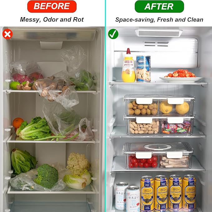 - Airtight & Freshness: The lid of the veggie tray features a silicone ring and 6 reinforced locking snaps, which create an excellent airtight and leak-proof seal. Effectively blocks external odors and dust, keeping your produce fresher for longer