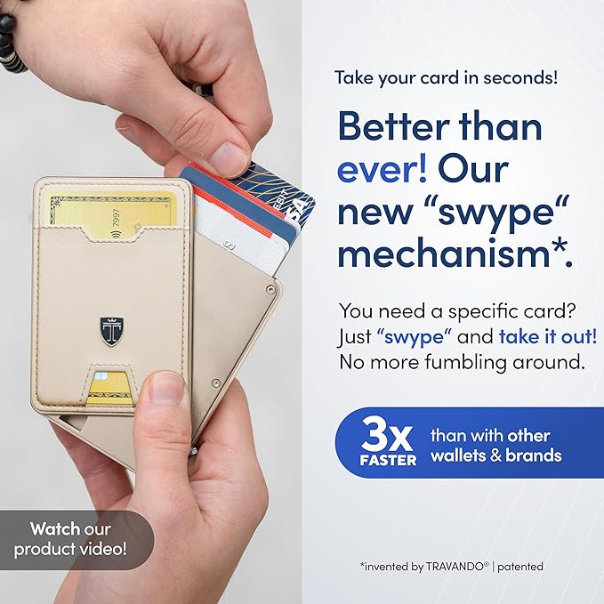 - ππππππππ ππππππ ππ ππππ πππππ - The patented SWYPE mechanism of this men's wallet pops out your cards with only one movement, enabling you to see all your cards at a glance and find your needed card instantly. The attached premium faux leather front pocket of this wallet allows you to push out the most-used card quickly. No more fumbling around!