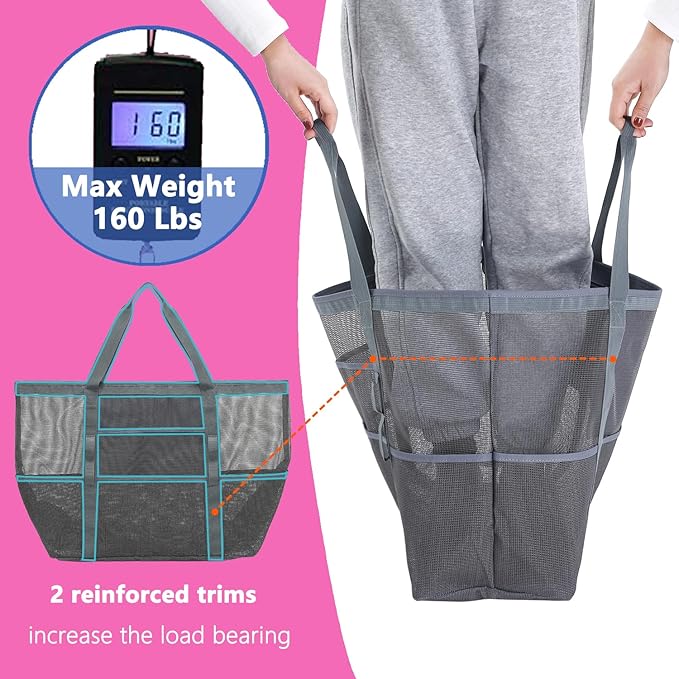 - ๐๏ธใ๐๐ฎ๐ซ๐๐๐ฅ๐ & ๐๐จ๐ซ๐ญ๐๐๐ฅ๐ใThis mesh towel bag is constructed from sturdy 600D polyester and tear-resistant mesh materials, and the reinforced stitching further ensures exceptional durability, allowing it to withstand loads of up to 160 lbs. This beach must haves is lightweight, collapsible and easy to carry. The 9-inch long shoulder strap of this beach tote for women adds a significant comfort factor to its transportation.