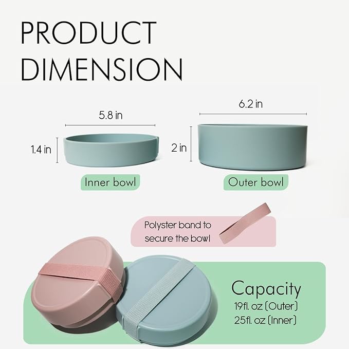 - PORTABLE DESIGN: Our portable dog bowl set is designed to be lightweight and convenient for on-the-go use. They nest together for easy storage and can be carried in your bag or backpack. When opened, one bowl can act as a food bowl, while the other can be used as a water bowl. This makes them ideal for day trips, hiking, and camping trips.