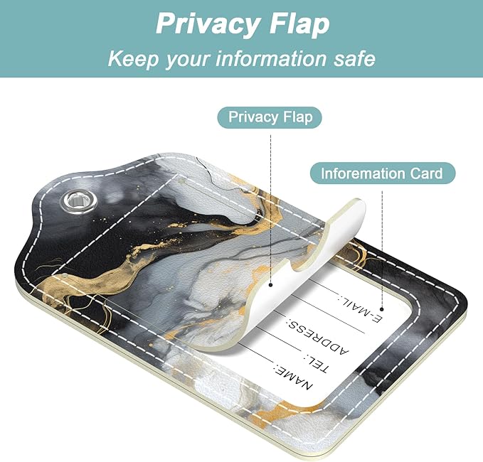 - Privacy Protection: Baggage tag with a privacy back cover to fully hide your owners information. Avoid snooping and improve security, so you don't have to worry about personal information leakage and enjoy a pleasant trip