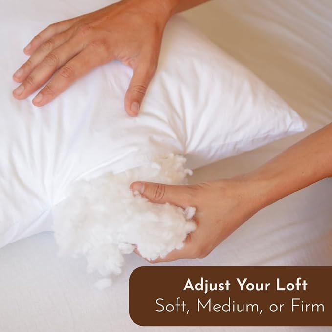 - Customizable Support - With a convenient side zipper, this adjustable pillw lets you add or remove filling to your perfect loft. Use as a firm pillow for side sleepers, softer pillow for stomach sleepers, or medium support for back sleepers.