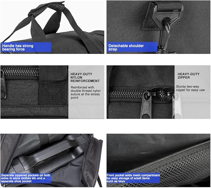 - 【Durable & Water-resistant Gym Bag】Gym bag is made of tear-resistant fabric with reinforced nylon stitching to ensure durability and performance.Sturdy zippers ensure durability and smooth operation of the gym bag.