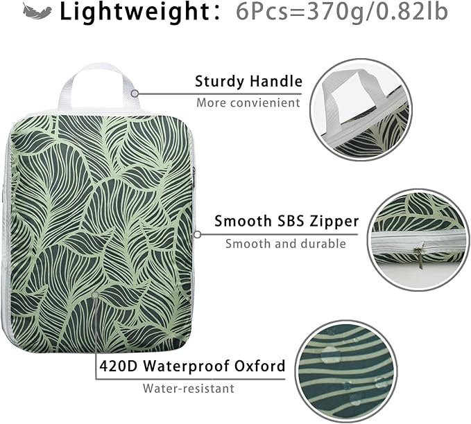 - Lightweight & Machine Washable: Crafted from quick-drying Oxford fabric, our packing cubes maintain their shape and color over time. Their lightweight nature ensures that they organize your clothes neatly in your luggage without adding extra weight. The waterproof Oxford fabric protects your items from moisture and stains, while its sunscreen and wear-resistant properties guarantee durability and reusability, making it ideal for enduring continuous travel.