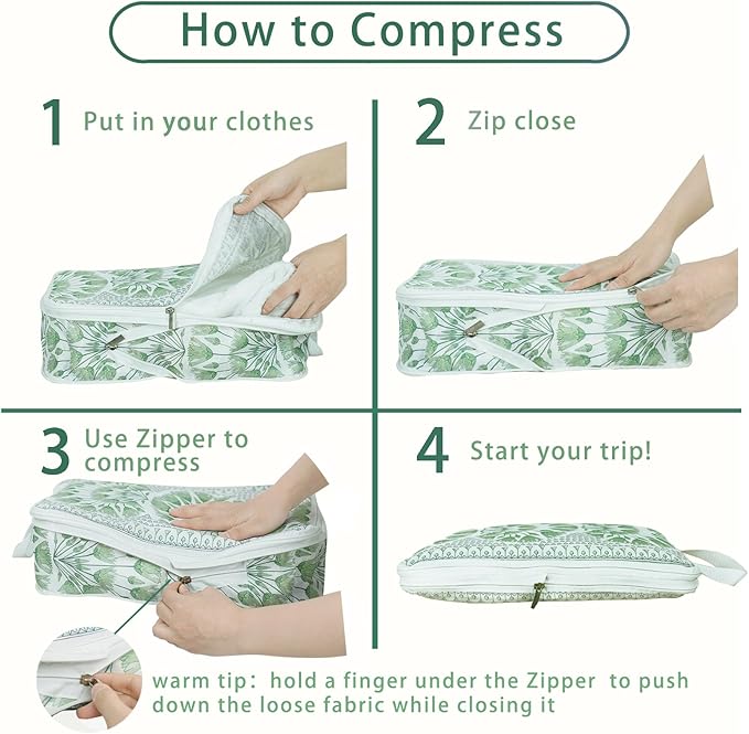 - Efficient Compression Design for Space Saving: Featuring a robust and smooth SBS two-way zipper, our travel organizer bags for luggage are designed for quick and effortless access. They not only secure your belongings effectively but also compress clothes by expelling excess air through an additional zipper. While not a conventional vacuum bag, this method optimizes storage space, preventing unnecessary wastage.