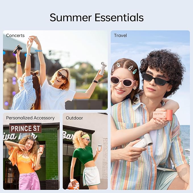 - Long Battery Life, 12 hours of Coolness: JISULIFE handheld mini fan is equipped with a 3600 mAh battery capacity, which can provide up to 12 hours of battery life, ensuring that you stay cool during travel, concerts and outdoor adventures