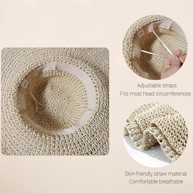 Floppy Big Beach Straw Hats for Women Foldable Summer Wide Brim Packable Sun Hat Womens Travel Straw Fedora Hat
