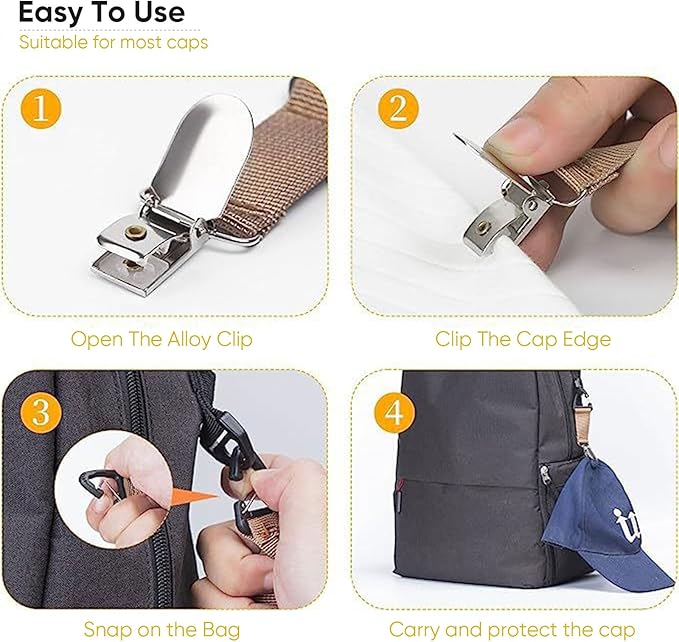 - Compact and Durable: This hat clip is designed for travel and outdoor activities, small and portable, making it easy to carry and use. The triangle buckle and steel clips on each end are sturdy and durable for long term use.