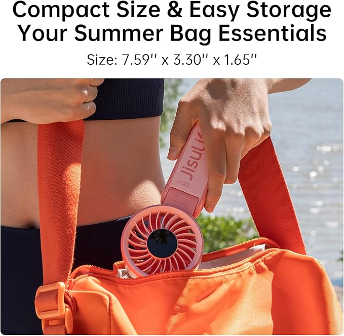JISULIFE Handheld Fan Life7 – Ultimate Flexibility: High-Power Motor, LED Display, 13 Hrs Cooling, 3600mAh Rechargeable, 5-Speed, Foldable Design, 3-IN-1 Portable Fan for Travel Cruise Beach(Pink)