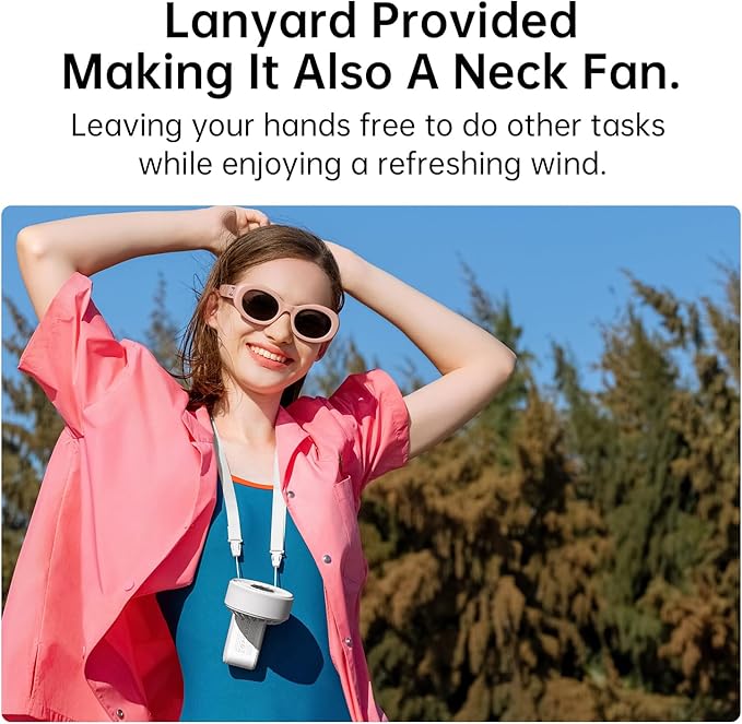 - 3-IN-1 Solution: Hang it around your neck for hands-free cooling or use it on your desk for a focused breeze; Its innovative design allows for handheld use, desktop placement, or worn around the neck, providing a 3-IN-1 solution for beating the heat