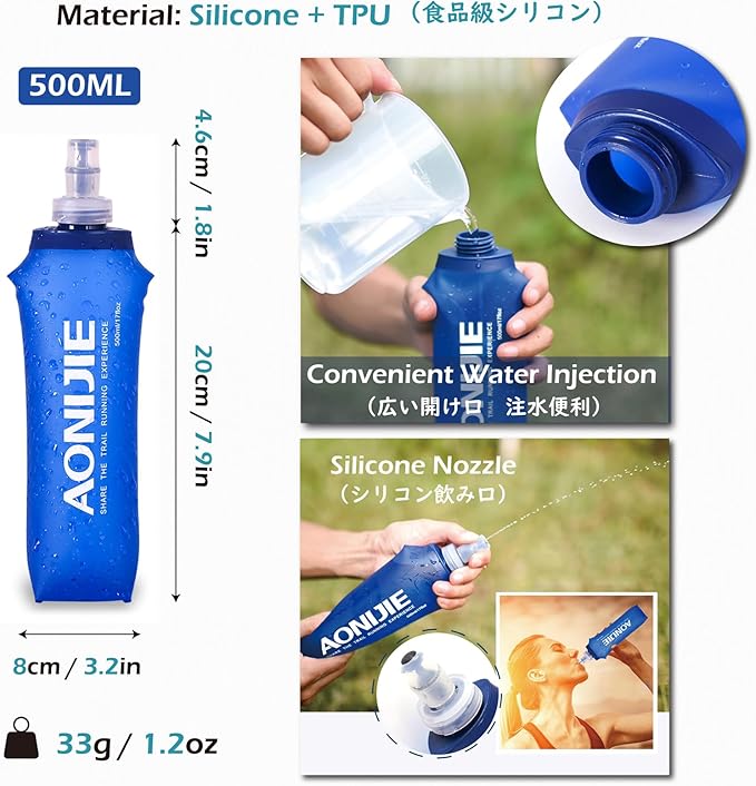 - Water Bottles Included: Comes with two 500 ml soft flasks; made of BPA-free TPU material; leak-resistant and pressure-tolerant for reliable hydration during outdoor activities