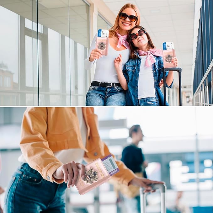 Coowayze US Passport Holder Wallet for Travel Men Women RFID Blocking Passport Cover Case, Waterproof Pink Leather Passport Book Protector with Vaccine Card Slot Travel Document Organizer