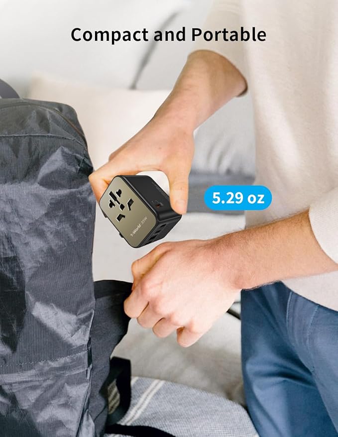 - PD 35W Fast Charging: This international adapter is equipped with 3 USB-C ports, 2 USB-A ports and 1 AC outlet (1250W Max in US) and supports PD3.0 & QC3.0 fast charging. The USB-C PD ports can even reach an incredible high speed of 35W. It is ideal for your USB devices, especially laptop, smartphone, tablet, power bank, camera, Vision pro, etc.
