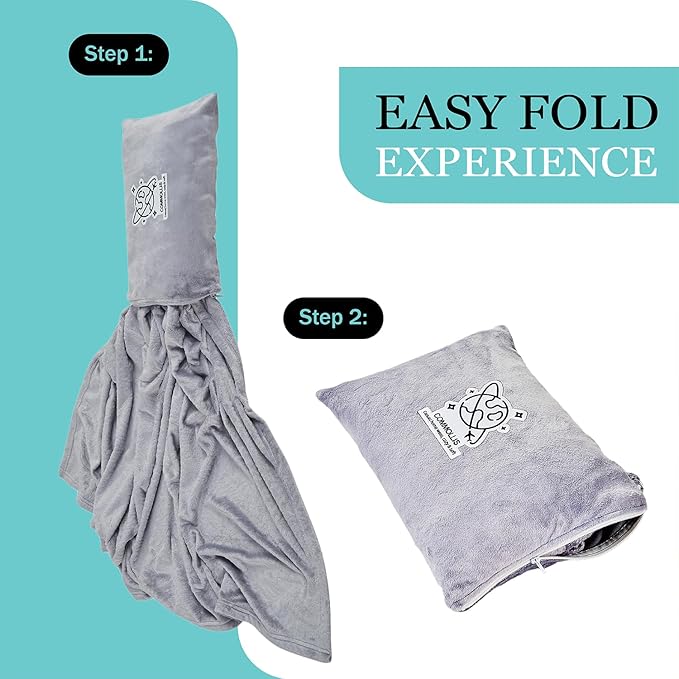 Commollis 2-in-1 Travel Blanket & Pillow for Airplane, Car, Train - Warm Compact Flight Blanket with Luggage Strap & Backpack Clip, Machine Washable, All-Season Use