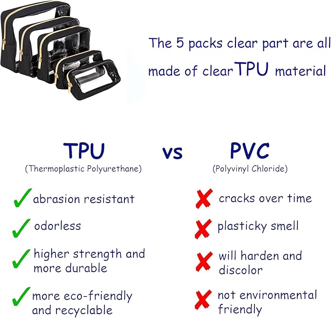 - Eco Friendly TPU Material: See through clear bags. When it comes to baby organizer, TPU is favored over PVC due to its softness, durability, and relatively safer environmental profile. TPU bags are generally more resistant to stains, easier to clean, and provide better protection for the items stored inside. There is no bad smell for TPU Material.