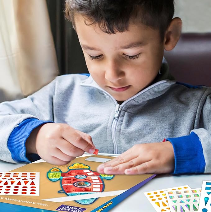 - MAGICAL CRAFTING ADVENTURE AWAITS - Unlock your creativity with 450+ dazzling stickers in enchanting designs, presented in a convenient and travel-friendly pack. Experience the unique play pattern as you engage in a distinctive process, meticulously peeling and sticking vibrant stickers onto enchanting Space themed templates.