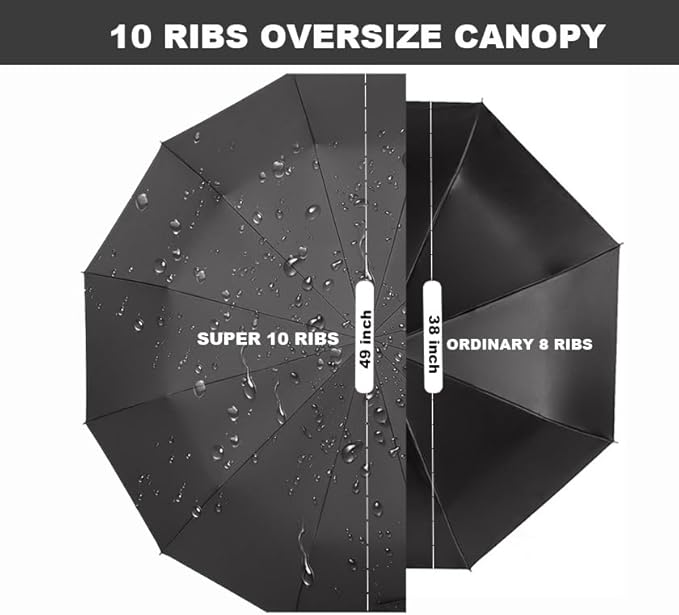 - Windproof - 10 reinforced fiberglass ribs flex slightly in powerful gusts keeping the umbrella from turning inside out and leaving you soaked;