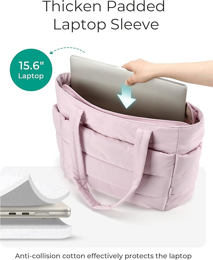 BAGSMART Tote Bag for Women, Lightweight Puffy Tote Bag with Compartments Shoulder Bag Handbag for Travel, Work, Gym