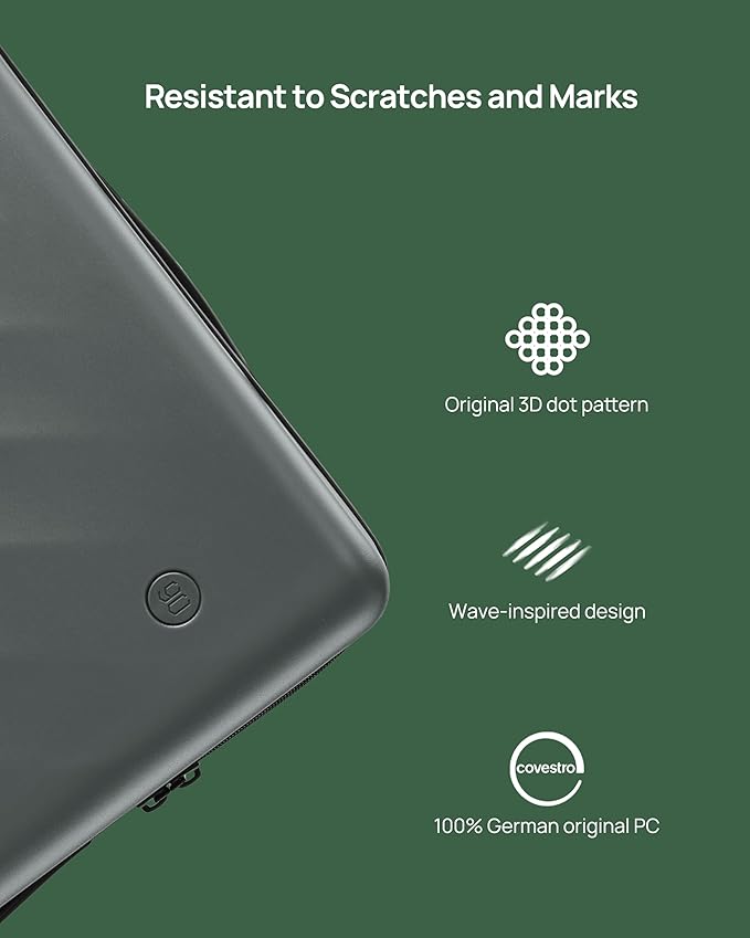 - 【Ultra-Tough Polycarbonate Shell】Constructed from 100% German Covestro polycarbonate, the scratch-resistant Micro-Diamond crush-proof exterior undergoes rigorous lab testing to withstand extreme impacts, rough handling, and accidental drops during air travel while maintaining its sleek appearance.