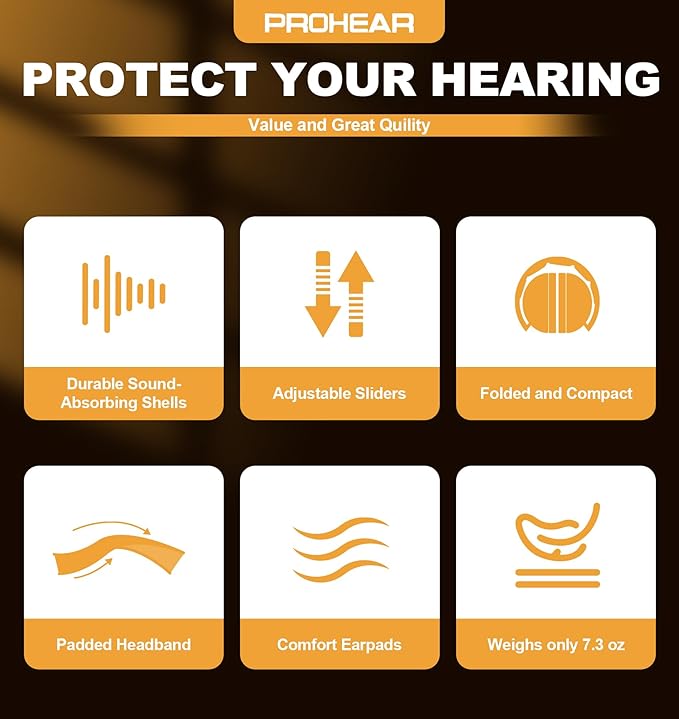 - NRR 28dB: PROHEAR EM038 use the composite housing's sound-dampening with the high-density qulity foam, help to provide protect hearing from most of the harmful loud noise.