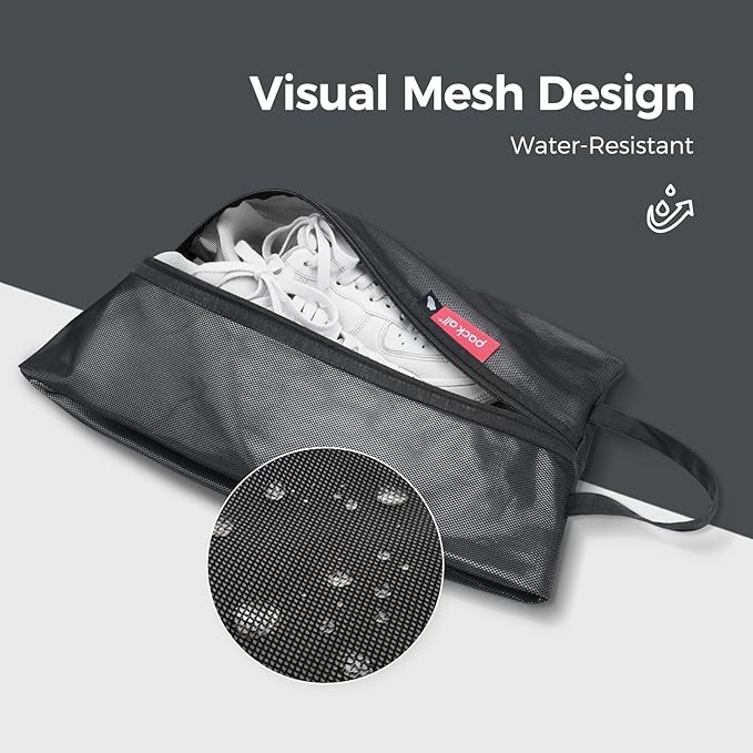 - Water-Resistant Protection: Made of high-quality polyester and TPU composite mesh material, this bag helps protect your shoes from water splashes. (Note: The stitching is not water-resistant, so please avoid submerging the bag in water.)