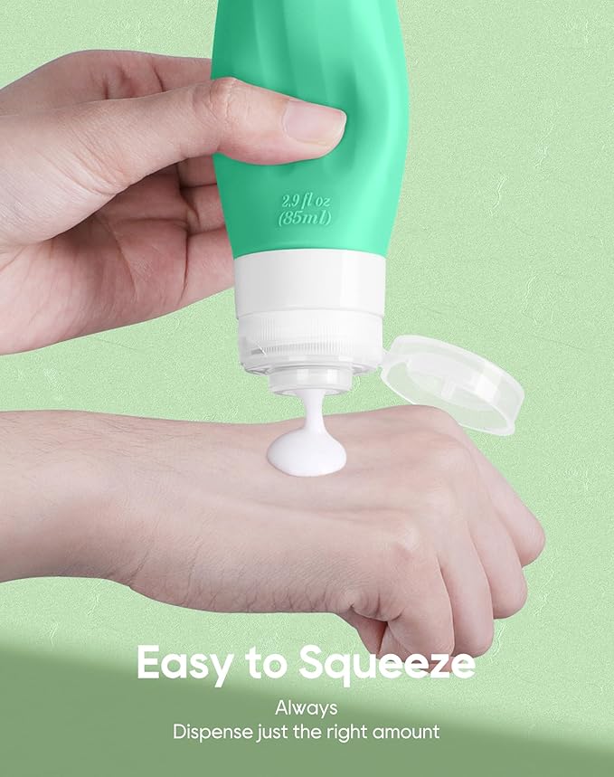 - 【SILICONE & SQUEEZABLE】Made of food grade Silicone which is BPA free and non-toxic, feel soft, flexible and comfortable instead of hard like traditional plastic travel bottles. The silicone is thick and durable but can be squeezed easily