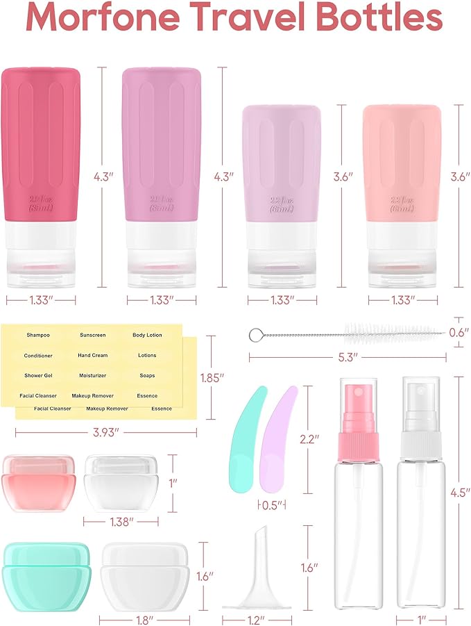 Morfone 16 Pack Travel Bottles Set for Toiletries, TSA Approved Travel Containers Leak Proof Silicone Squeezable Travel Accessories 2oz 3oz for Shampoo Conditioner Lotion Body Wash (BPA Free)