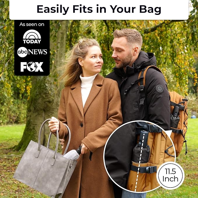 - LIGHTWEIGHT, EASY ONE-HANDED USE, SMALL & PORTABLE: Take this compact umbrella for travel with you wherever you go. So versatile and simple to use, with just the touch of a button, you can automatically open or close your Tumella. It fits perfectly in your backpack, purse, or car door, with just 11 by 2.75 inches in size, weights less than 1 lb, while offering a huge coverage of 42 inch.