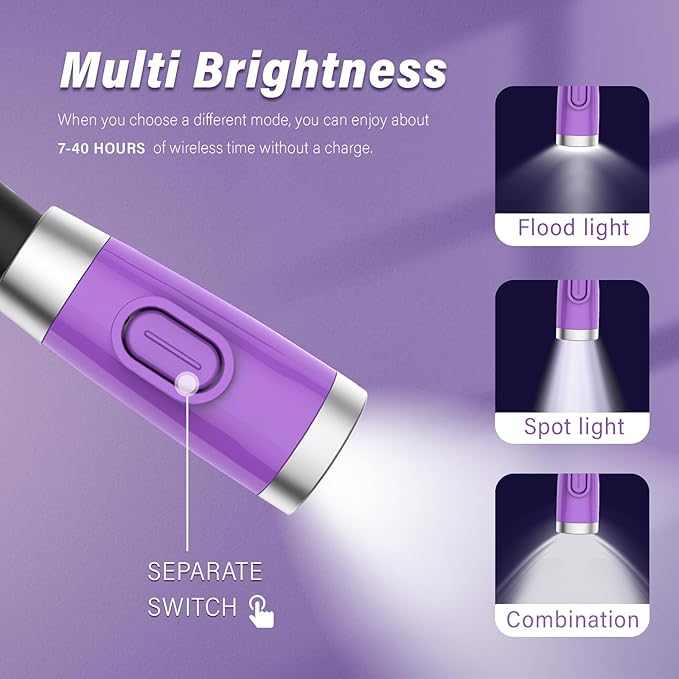 - [Lightweight & Long Lasting] We understand the importance of convenience. Our book lamp is lightweight and compact, making it easy to carry. Whether you want to use it in your bedroom, living room, or take it on your travels, it's the perfect companion for your reading adventures.Our reading light features a rechargeable battery that provides long-lasting illumination. Simply charge it using the included Type-c cable, and you're ready to enjoy up to 7-40 hours of uninterrupted reading time.(7h high brightness / 40h low brightness)