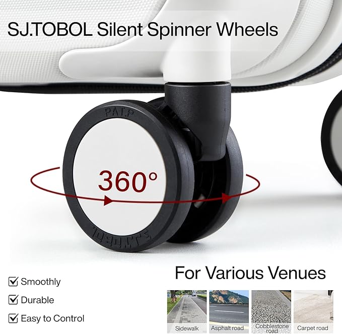 - 【Reliable Handling & Effortless Mobility】3 piece Luggage sets with spinner wheels multi-directional are SJ. TOBOL universal design with wear-resistant that rolls extremely easily to make it carry through the airport smoothly, suitcases with wheels are big enough to ride smoothly over uneven surfaces, like sidewalks, grasslands, etc,.The aluminum retractable handle is easy to push up and down with just the press of a button for 3 height option, offers you with a comfortable travel experience.