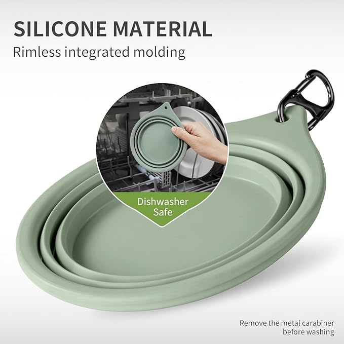 - Collapsible Design : The travel dog bowls can collapse completely flat, easy to storage, clip onto backpack, belt loop, dog leash, put them in your car or vehicle