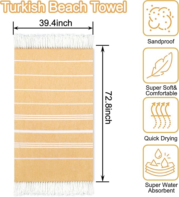 - 【SUPER ABSORBENT& DRIES QUICKLY】Thanks to original turkish cotton, our large beach towel is super absorbent and quick dry.Our oversized beach towel absorbs up to 9 times its own weight in liquid, wicking away water, leaving you warm and dry in no time.Oversized beach towels for adults allow no damp smell ever and give you a decent clean feeling.So you can avoid embarrassment and cold after swimming in the pool or on the beach or bathing(it is also can be used as turkish bath towels)