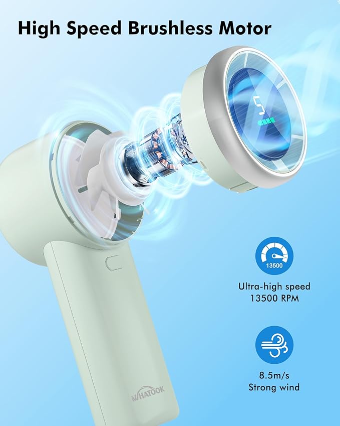 - SUPER FAST SPEED: Adopting brushless motor, the speed is up to 13,500RPM per minute, super high speed brings cooler wind experience