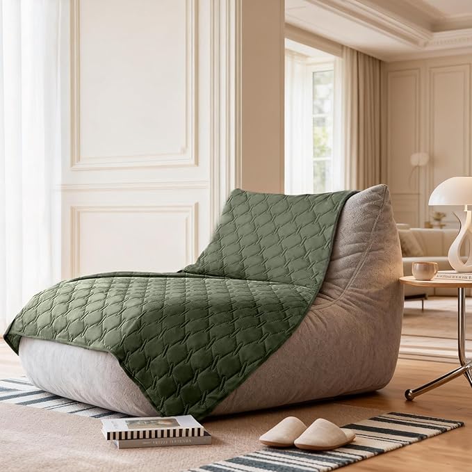 gogobunny 100% Double Sided Waterproof Dog Blanket Soft Pet Bed Cover Reversible Protect Furniture Couch Sofa Car for Puppy Large Dog Cat (Dark Olive/Light Olive, 82x82 Inch (Pack of 1))