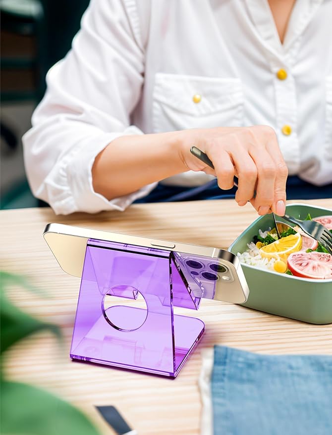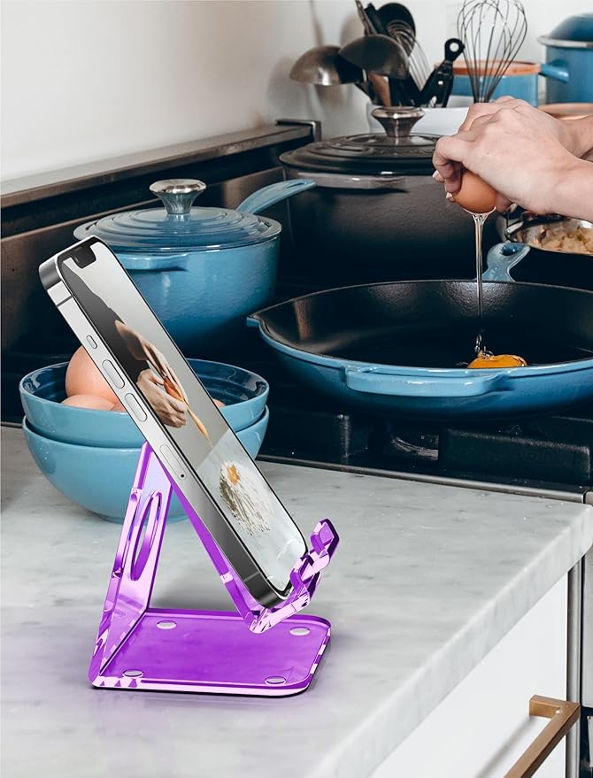 TOPGO Acrylic Cell Phone Stand, Clear phone Holder for Office Desk, Vanity, Kitchen Counter, Bedside Table, Compatible with iPhone 17 16 15 14 13 12 Pro Max Plus/Smartphones/iPad/Switc(Crystal Purple)
