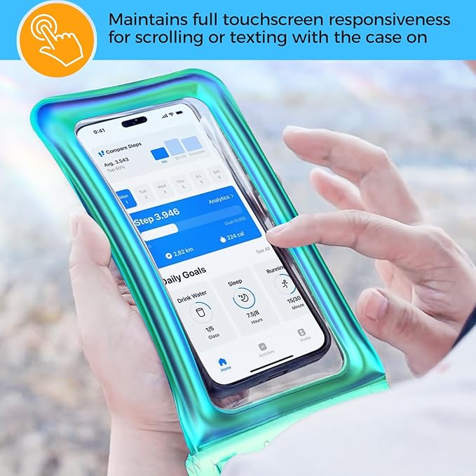 - Suitable for most smartphones up to 7 inches diagonal size such as iPhone 17/Air 16 15 14 13 12 Pro Max Xs Max XR X 8 7 6S Plus SE/Galaxy S24 S23 S22 S21(Certain big screen phones need to remove protective case); Credit card wallet money waterproof dry bag for ship, pool, fishing, swimming, boating, kayaking, snorkeling and water park activities