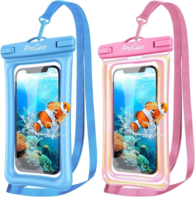 ProCase 2 Pack Floating Waterproof Phone Pouch Up to 7", IPX8 Floatable Underwater Phone Case Dry Bag for iPhone 17/Air 16 15 14 13 12 11 Pro Max Xs Max XR X 8 7 Plus SE/Galaxy S24 S23 S22 - PinkBlue