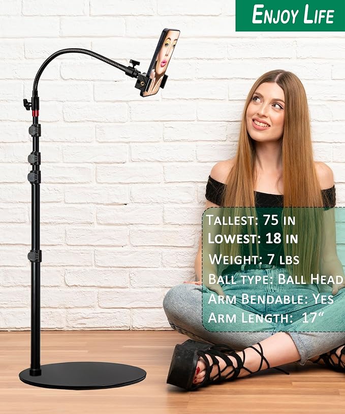 - Wide Compatibility: the floor gooseneck universal phone holder and the 1/4 inch 360 degree ball head makes it the height adjustable tall overhead phone stand compatible with almost all phones such as iPhone 15, iPhone 15 Plus, iPhone 15 Pro, iPhone 15 Pro Max, iPhone 14, iPhone 14 Pro, iPhone 14 Pro Max, iPhone 13 Pro Max, iPhone 13 Pro, iPhone 13, iPhone 13 Mini, iPhone 12 Pro Max, iPhone 12 Pro, iPhone 12, iPhone 12 Mini, iPhone 11, 11 Pro, 11 Pro Max, XS Max, XS, XR, X, 8 Plus, 8, 7 Plus, 7, 6S Plus, 6S, SE, 6, 5S, 5C, 5, Galaxy S10e, S10+, S10, S9+, S9, S8+, S8, S7 Edge, Note 9, 8, 7 and so on.