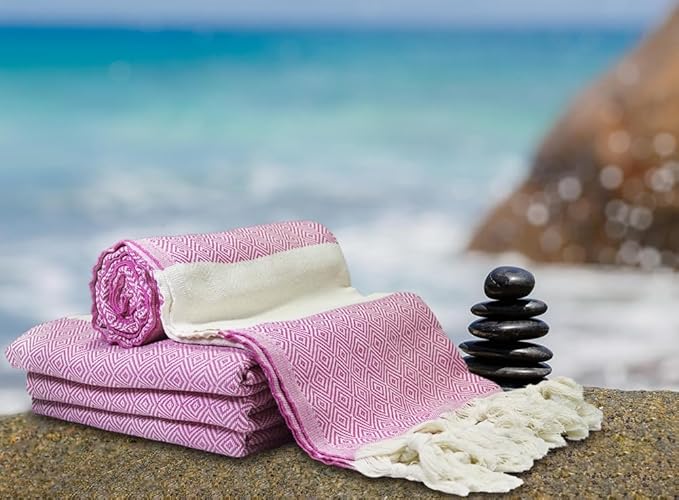 - VERSATILE DESIGN: These stylish and vibrant beach towels feature a classic diamond pattern in a variety of vivid colors to suit any taste.