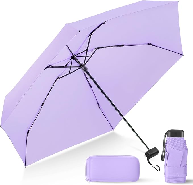 LEAGERA Compact Mini Travel Umbrella with Case - Mini Umbrella for Purse, Small Lightweight &Tiny Design Perfect for Parasol Outdoor Sun&Rain Umbrellas, Light Purple Color