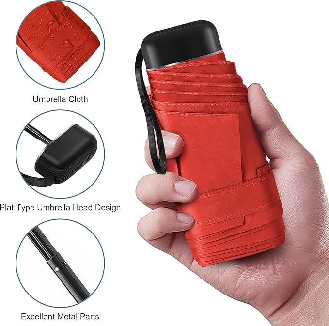 - Light and Compact:This mini purse umbrella with small case weighs only 0.52 lbs and length:5.9in, fits perfectly in your backpack, purse and pockets
